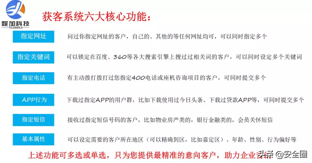 据其介绍,该公司的获客系统十分。“你可以指定任意网站或者App,只需要提供网站链接或者App的名称及下载链接,我们就可以抓取到访客的手机号码。”吴辉说。