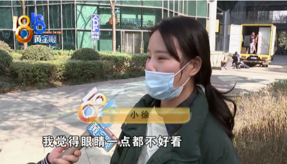 小徐:“我觉得眼睛一点都不好看,还不如以前,你看这两边眼睛这下面都是有点盖着的,要这样拉上去是不是,然后你看,这个肉条都是泡(肿)起来的,我觉得价格太高了,根本就不值这个钱,我想让他退款,而且不是说让他全部退,我想让他退个至少百分之六十。”