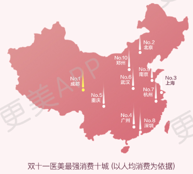 此次更美双十一强消费十城分别是:成都、北京、上海、广州、重庆、武汉、杭州、深圳、南京、郑州。成都超过北京成为人均消费第一。
