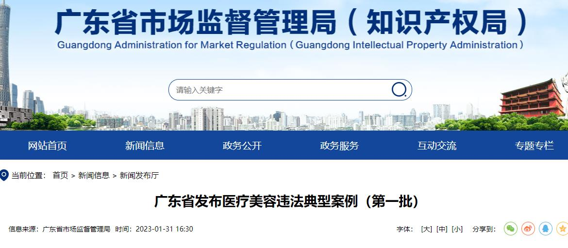 中国经济网北京2月3日讯 广东省市场监督管理局(知识产权局)网站日前公布《广东省发布医疗美容违法典型案例》(第一批)。