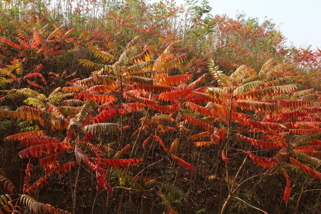 12.盐肤木推荐理由:盐肤木是中国主要经济树种,可供制药和作工业燃料的原料。其皮部、种子还可榨油。在园林绿化中,可作为观叶、观 果的树种。