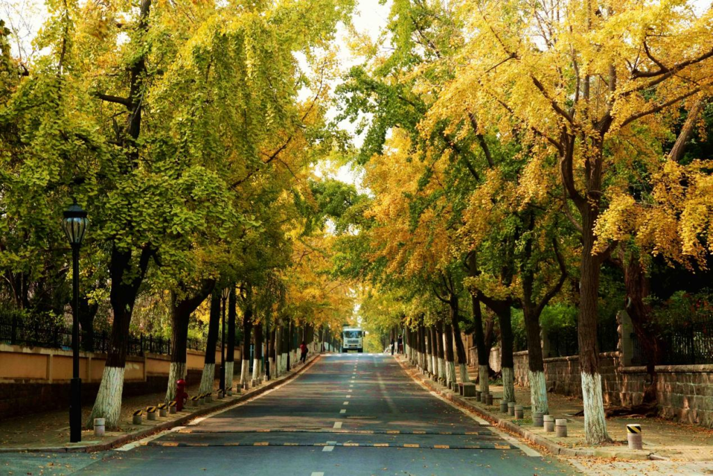 14.银杏推荐理由:银杏为落叶乔木,寿命可达3000年以上,被誉为植物界的“活化石”。银杏叶片秋季呈金黄色,扇形,多为二分裂状,如一只翩翩起舞的蝴蝶。“古树婆娑印月影,秋风慰藉谁情怀?”走在银杏树下,可尽情感知历史的沧桑和季节的斑斓。