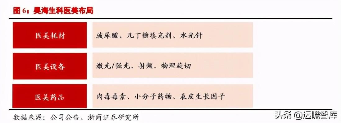 目前,公司已发展成为集医药研发、生产、经销为一体的大型综合性医药上市公司。 医美业务化布局,打造玻尿酸、、埋线、器械等丰富医美产品矩阵。华东医药在 2013 年与韩国 LG 公司合作,取得伊婉透明质酸钠注射剂 10 年中国代理权,切入医美赛道。