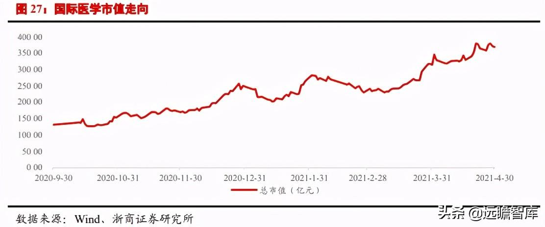 医美产品驱动医疗终端产品收入爆发。疫情下公司医疗终端产品收入仍实现17.8%增长,其中来自医美药械/骨科注射液产品时候入同比增长9.7%/10.4%至 4.35 亿/9000万元。21年医美产品火爆,驱动21Q1医疗终端产品收入爆发增长,终端产品收入占比约25%。