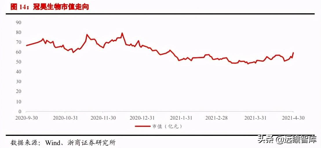 根据艾瑞咨询数据,华熙2019年透明质酸原料市占率达39%;加上2020年通过并购揽获行业排名第四的东辰生物(佛斯特)8%的市场份额,总市场份额高达47%。21年原料业务已从疫情的影响中恢复,21Q1收入同比增长约10%,收入占比约20%。