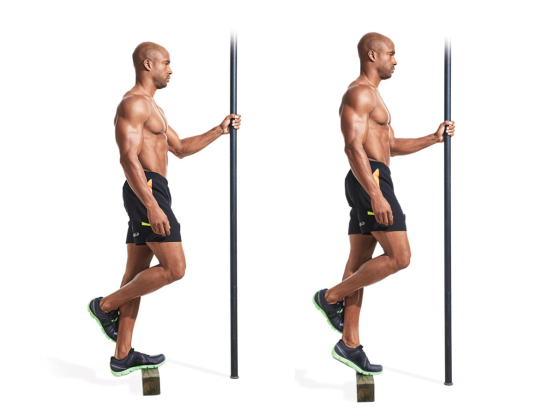 找一个台阶+固定物体,做单腿的提踵,用手把住固定物体,维持自己的平衡。