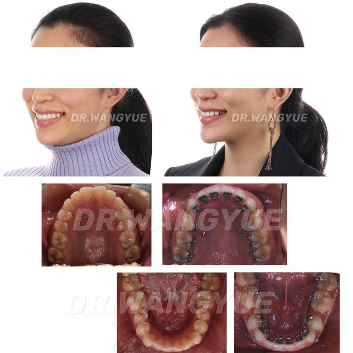 舌侧美女矫正不到半年,突度内收已经有了很的效果,下巴出来后让整个侧貌都变得精巧,少女感