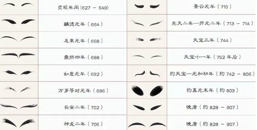 眉形的审美变化,就很有意思。