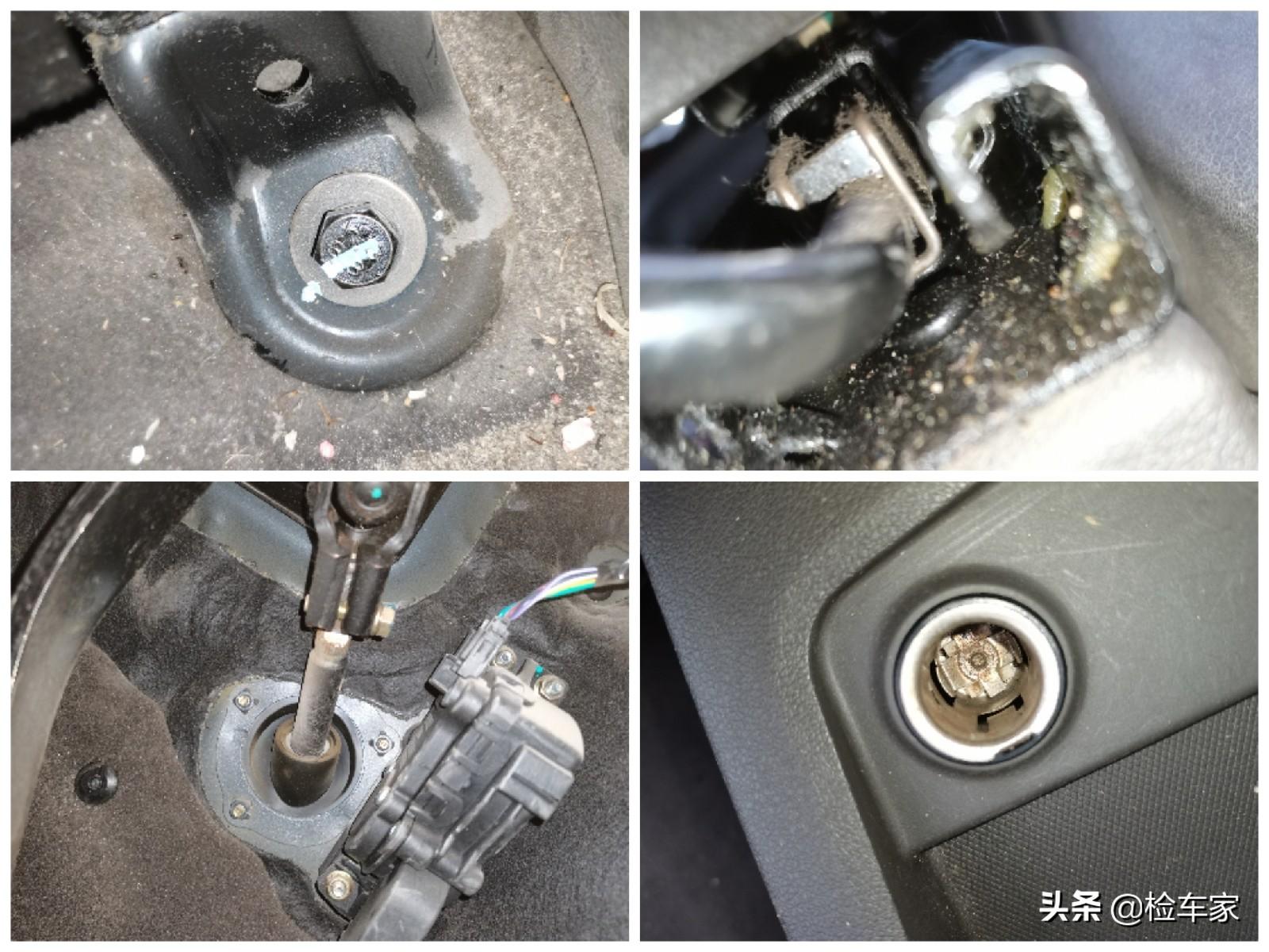 泡水项目的检测也比较顺利,车内没有霉味,方向盘管柱和座椅骨架及轨道均无生锈痕迹,固定螺丝无拆卸。全车带没有拆卸更换,拉扯无异常,表面没有发霉,卡槽内没有不好清理的泥沙残留。再综合点烟器、保险盒等金属部件的情况,我们可以排除车辆涉水泡水的嫌疑。