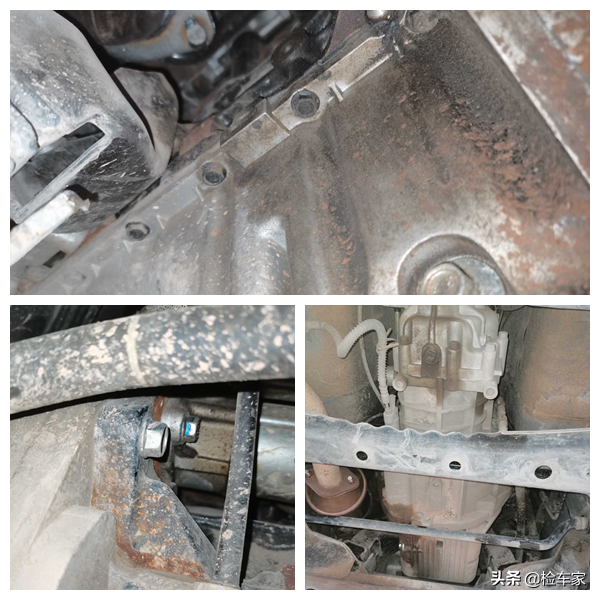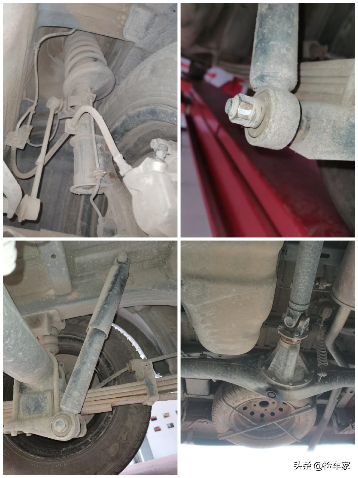 将车辆开进我们店内,用举升机抬起来检测底盘。四轮悬挂、车身地板和横竖纵梁均无剐蹭变形,各处螺丝均无拆卸拧动,胶套也没有破损渗油的情况。