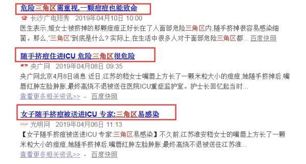 “平时我们的脸上容易长一些粉刺和痘痘,有些人会直接用手将包里的脓性物质挤出来。实际上,不管包是不是长在三角区,都不提倡用手挤,因为可能引发炎症。而三角区又是个特别的存在,因此更加不能挤。”