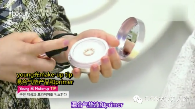 3.选择有珍珠光泽感的妆前乳涂在苹果肌、额头以及下巴处做基础提亮,薄薄上一层就可以。