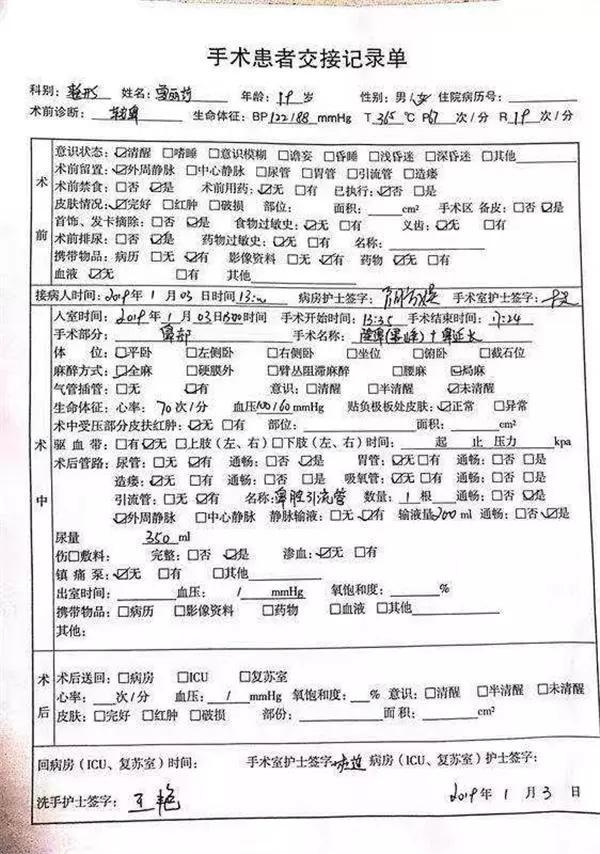 后一次,一个医护人员表示“手术已经做完,还没苏醒,要等麻药劲过去。”