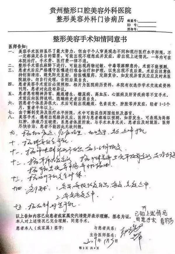 1月4日,贵州都市报冲锋鸡记者来到利美康整形医院,当时为夏丽莎主刀的医生张智毅的签名多次出现在夏丽莎的诊疗手术单等材料上。