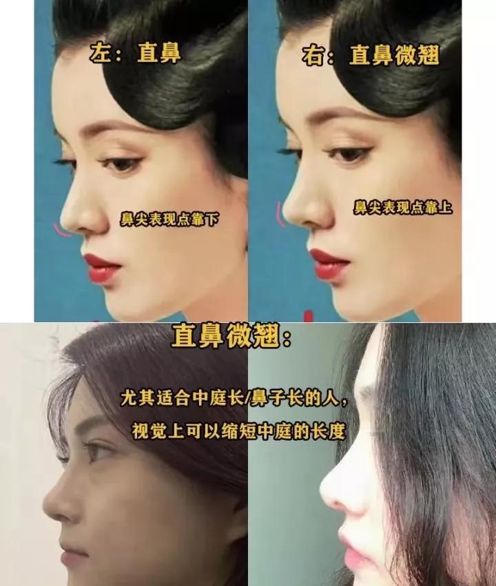 适合人群:无限制,中庭偏长的人尤其适合直鼻微翘,微翘的鼻头可以视觉上降低中庭长度。