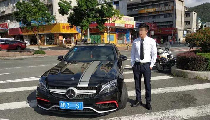 酷爱红色的不止罗某,还有下面这位施先生,不仅在奔驰C63外加了两道红,还问交警:“你识唔识车咖?”