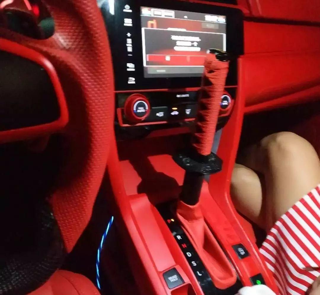 退回到车头看到大大稳妥的“H”,李警官才确定眼前这辆车确实是思域。只见思域车内座椅、方向盘、车门内侧全是耀眼的红色,就连带都是红色的。虽然抢眼,不过这种红可不叫“法拉利红”,而是“改装红”。更令人惊讶的是,司机竟然还把思域的档位把手换成了长柄刀,而且同样是红色的。▼