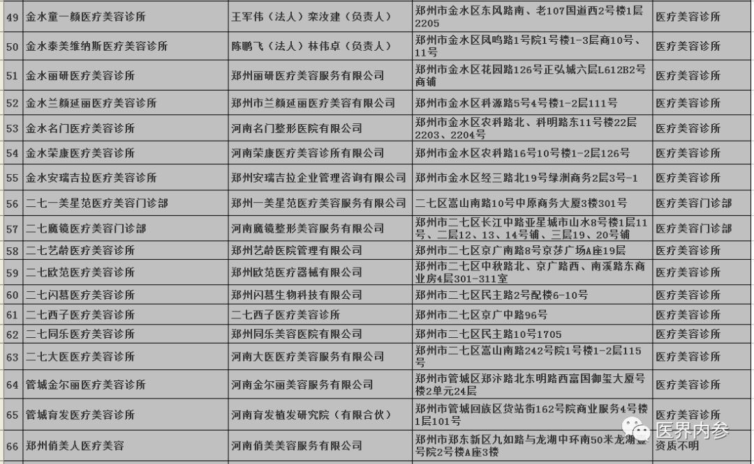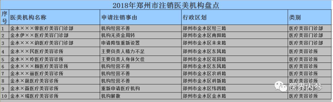 一边是疯狂进场,一边是黯然退场。2018年有10家医美机构申请注销,退出了郑州医美市场,其中不乏老牌医美(见下表)。