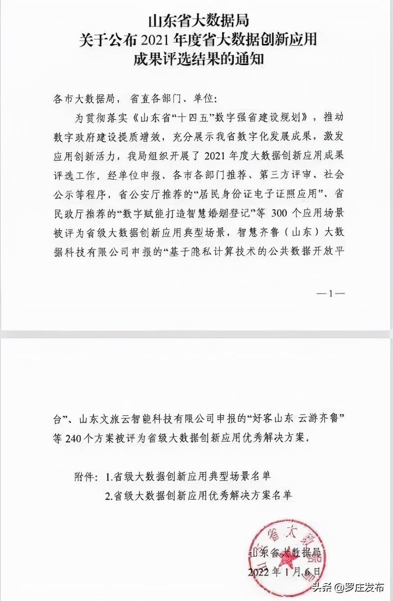 1月6日,山东省大数据局公布了2021年度省大数据创新应用成果评选结果,其中罗庄区医疗保障局“医保电子凭证医院场景全流程应用”成功评选为“教育医疗类”省级大数据创新应用典型场景。