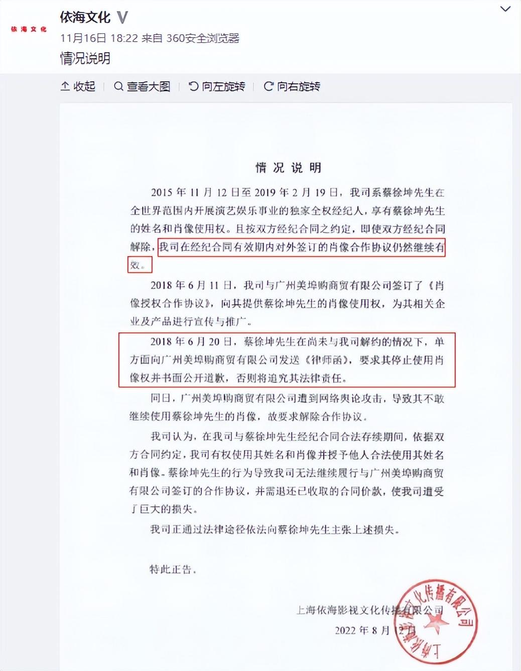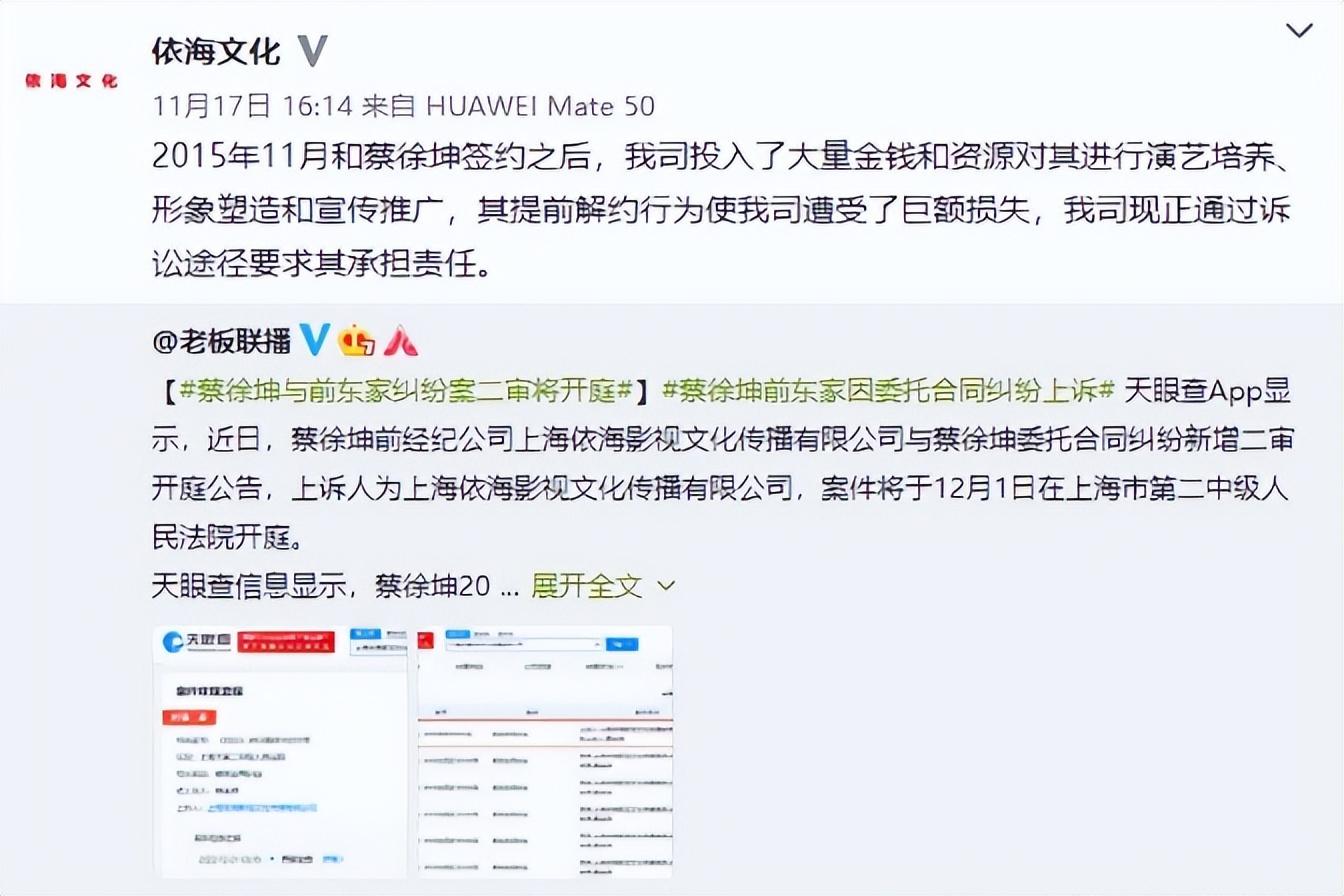 11月21日晚,蔡徐坤的前经济公司就这么做了!