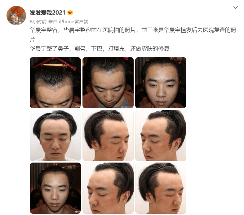 还放出华晨宇在整容医院,复查植发的照片。