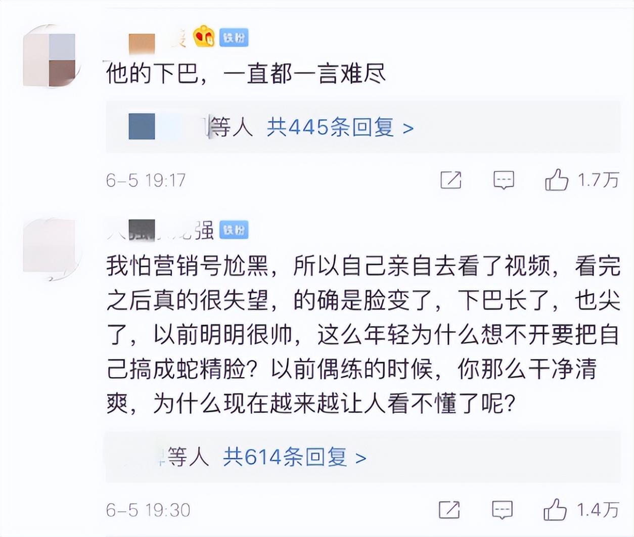 还有网友质疑蔡徐坤的下巴是不是打针了?