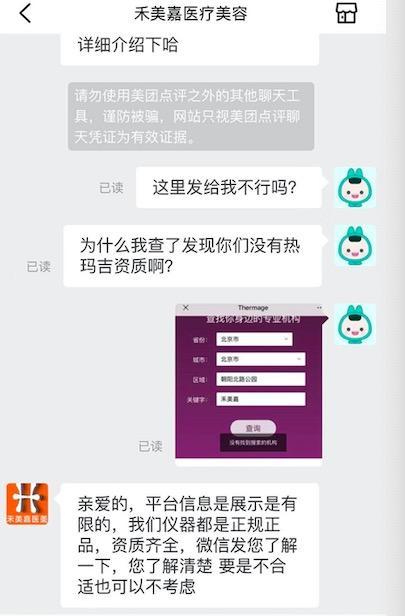 对此“美泡泡”相当愤怒,她要求查看资质,和负责人进行了激烈的争吵,机构方也松口承认机器是假的,终该女士退钱回家。经过在博士伦官方平台上查询,21世纪经济报道记者同样发现,该机构并无热玛吉资质。在与客服的沟通中,记者要求给出相关资质,客服闪烁其言,并且一再要求加个微信。在记者点明查询发现对方没有热玛吉资质的时候,客服却给出了另一种话术“这个资质本身就是国内代理公司办理的,我们的仪器是美国热玛吉厂家进口。”