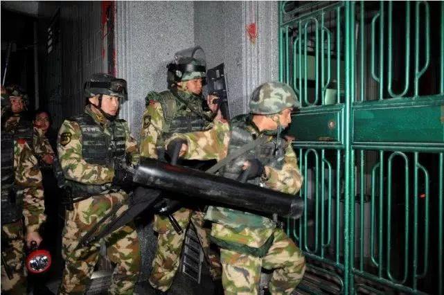 广东警方清剿博社村行动中,边防武警破门攻坚