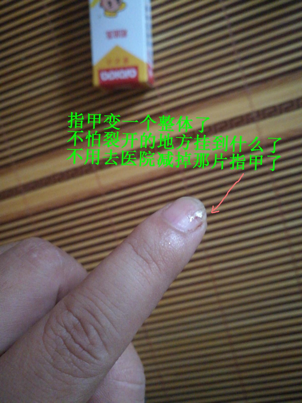 我瞬间脑洞大开,取指甲就是因为它碍事。如果我用502胶水把裂开的地方粘住,那不就没事了。