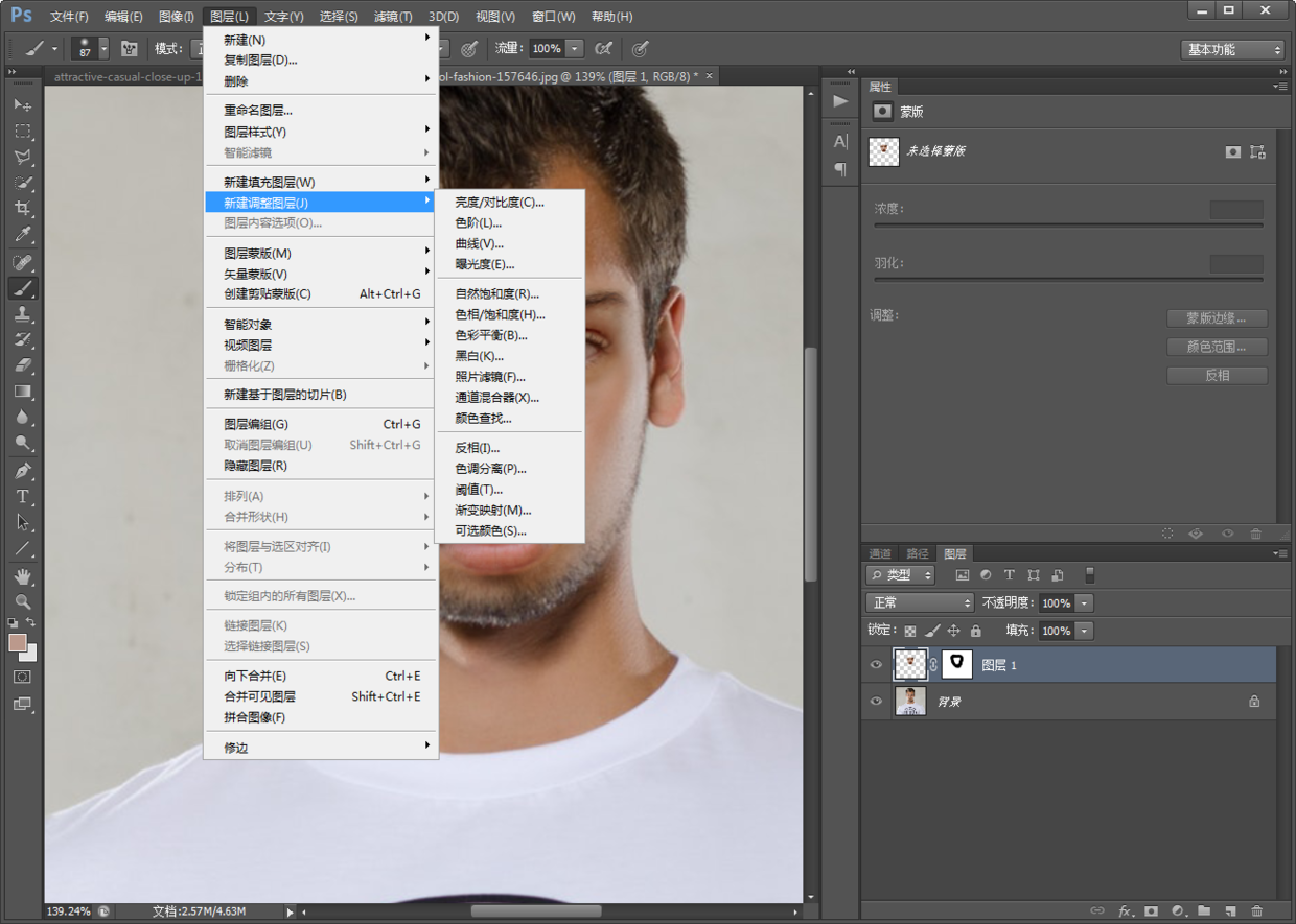 来到白T恤的图层,新建图层1,ctrl+V粘贴;