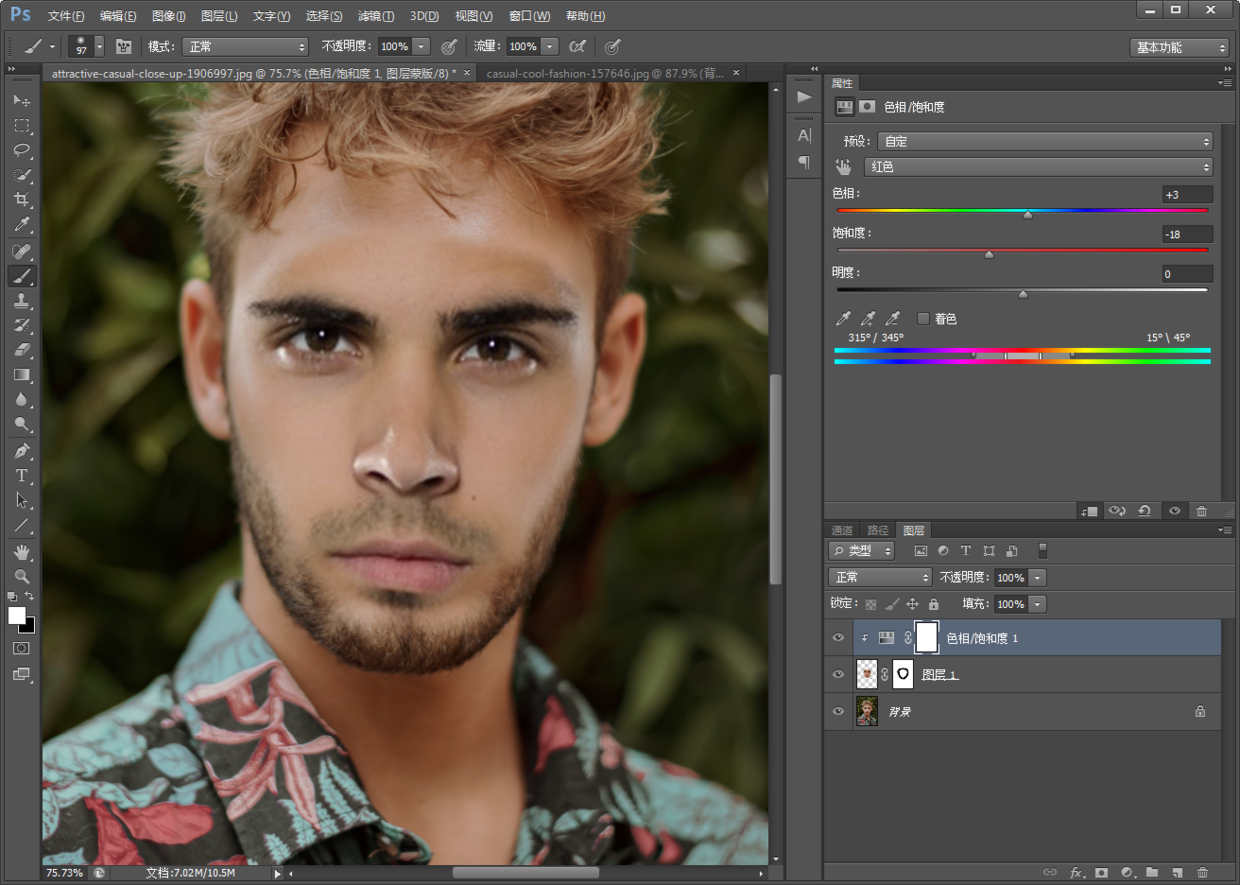 先进行色相/饱和度调整;