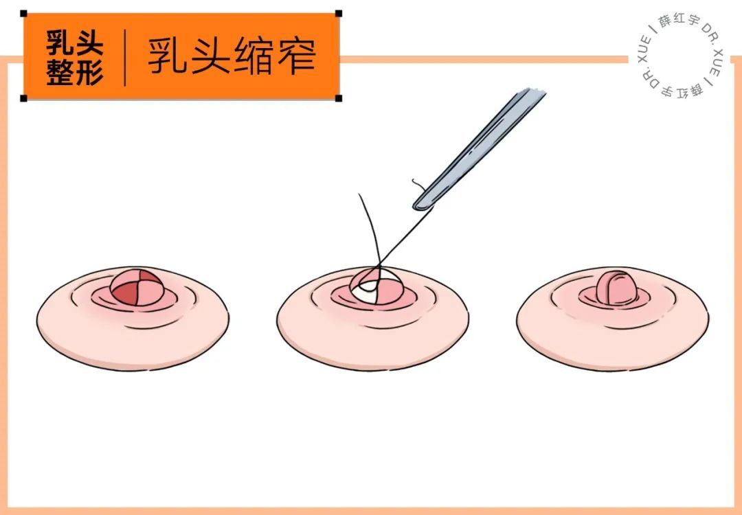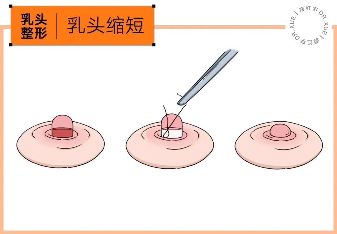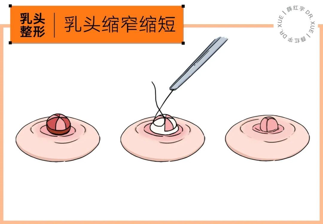 乳头肥大可能是宽-需缩窄、可能是长-需缩短、可能皆有-需缩窄缩短,都是根据实际情况设计切口、缝合,达到改良。