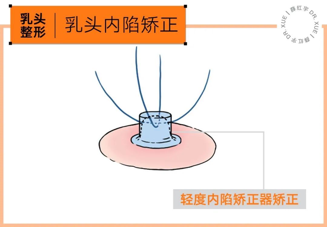 如果内陷程度比较轻,刺激后能凸起,使用矫正器便可达到不错的效果。该方法损伤很小,但要佩戴3个月以上矫正器。