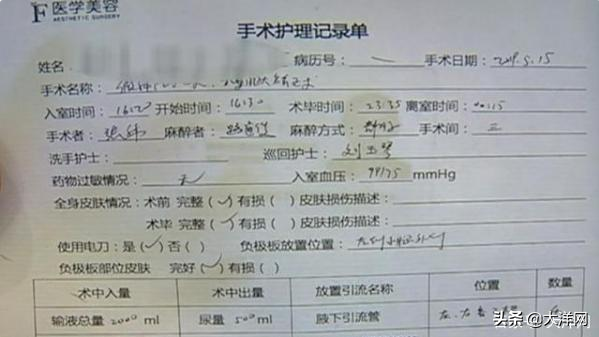 王小姐:“我当时就问他们,他们说是麻药过敏,但是后来又说不是过敏。而且我发现我要做的提升他没有给我做,那个单上面都没有写。”