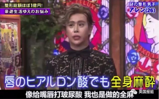 观众问了,多少零花钱能支撑这样的整容呀?艾伦娇羞的回答说:19岁开始整的,9000万日元左右差不多啦(约590万人民币)!靠着一张脸顺利过了这么久贵妇生活,他究竟是什么神奇人物?