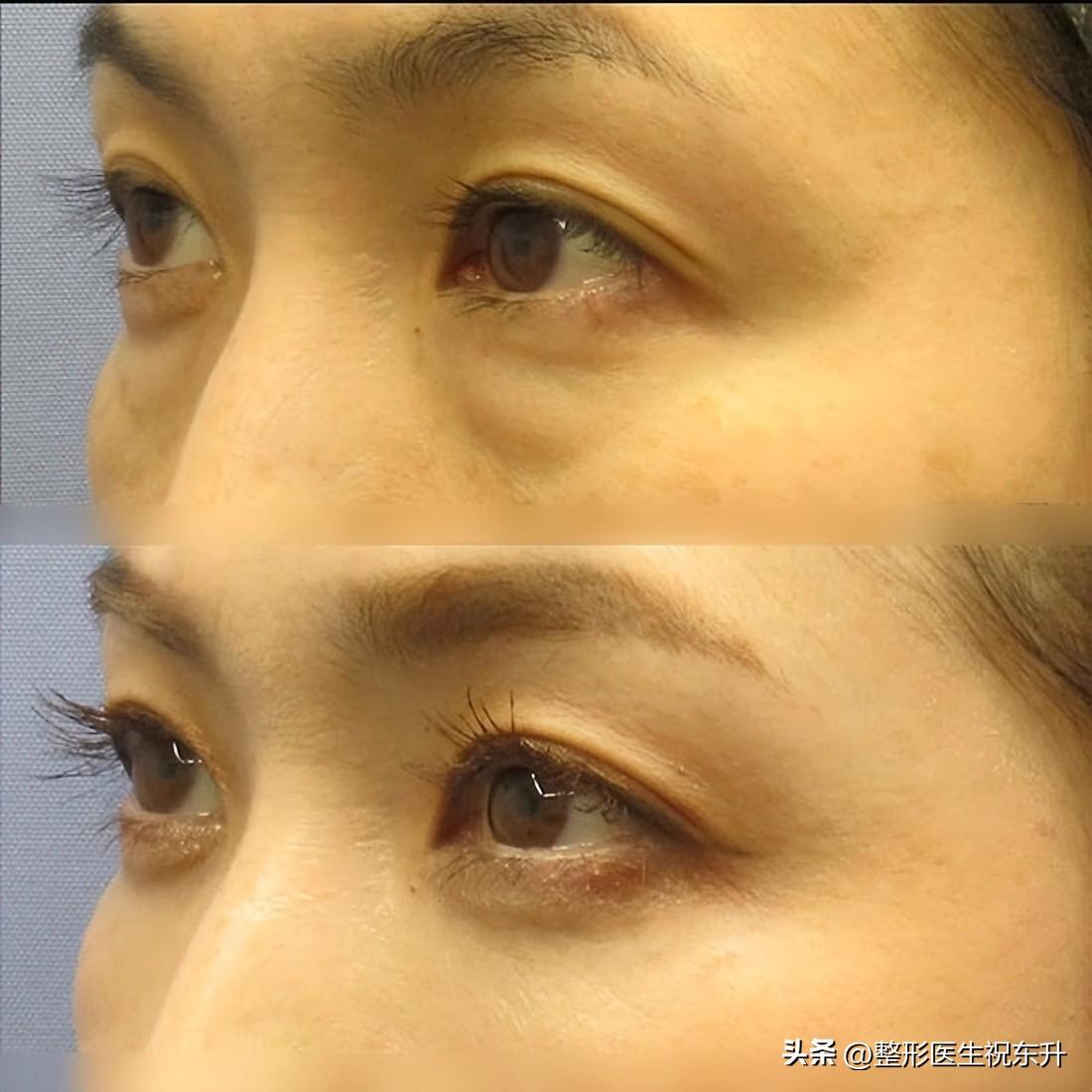 当时采用的手术方案是:提眉手术+外切祛眼袋手术。
