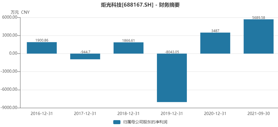 炬光科技净利润也并不稳定。2016年以来,盈利能力基本呈现一年赚一年亏的情况,2019年因商誉减值亏损扩大至8043万元,2021年前三季度公司净利润为5689.6万元。