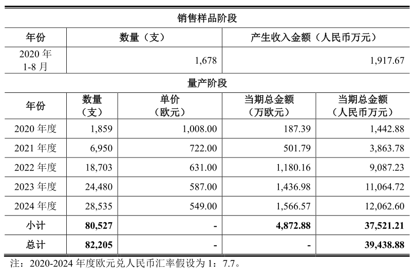 按照合同规划,炬光科技激光雷达发射模组每年向大陆集团销售数量将从2020年的1859支增长至2024年的28535支,相应的,单价也将从1008欧元降至549欧元。