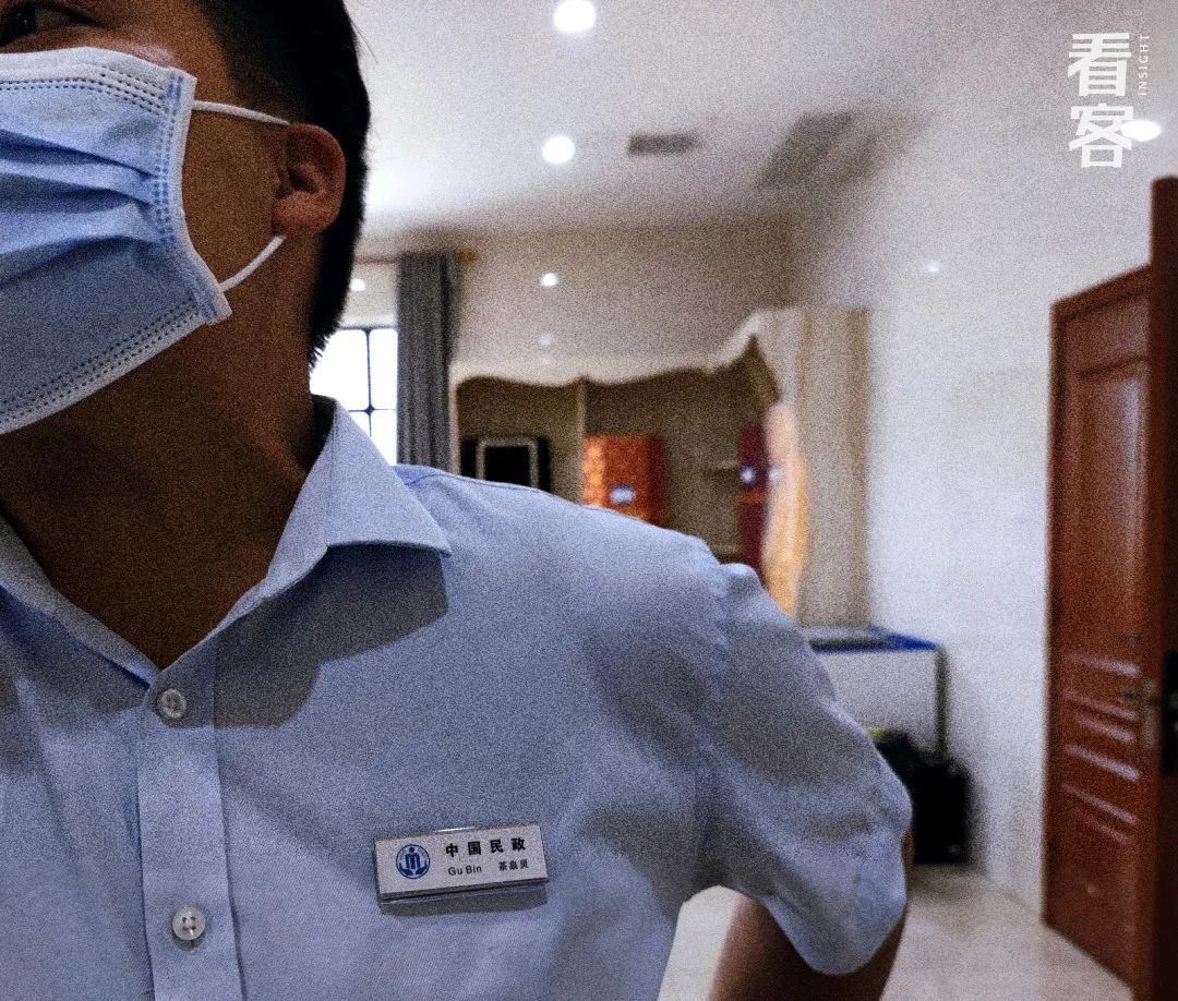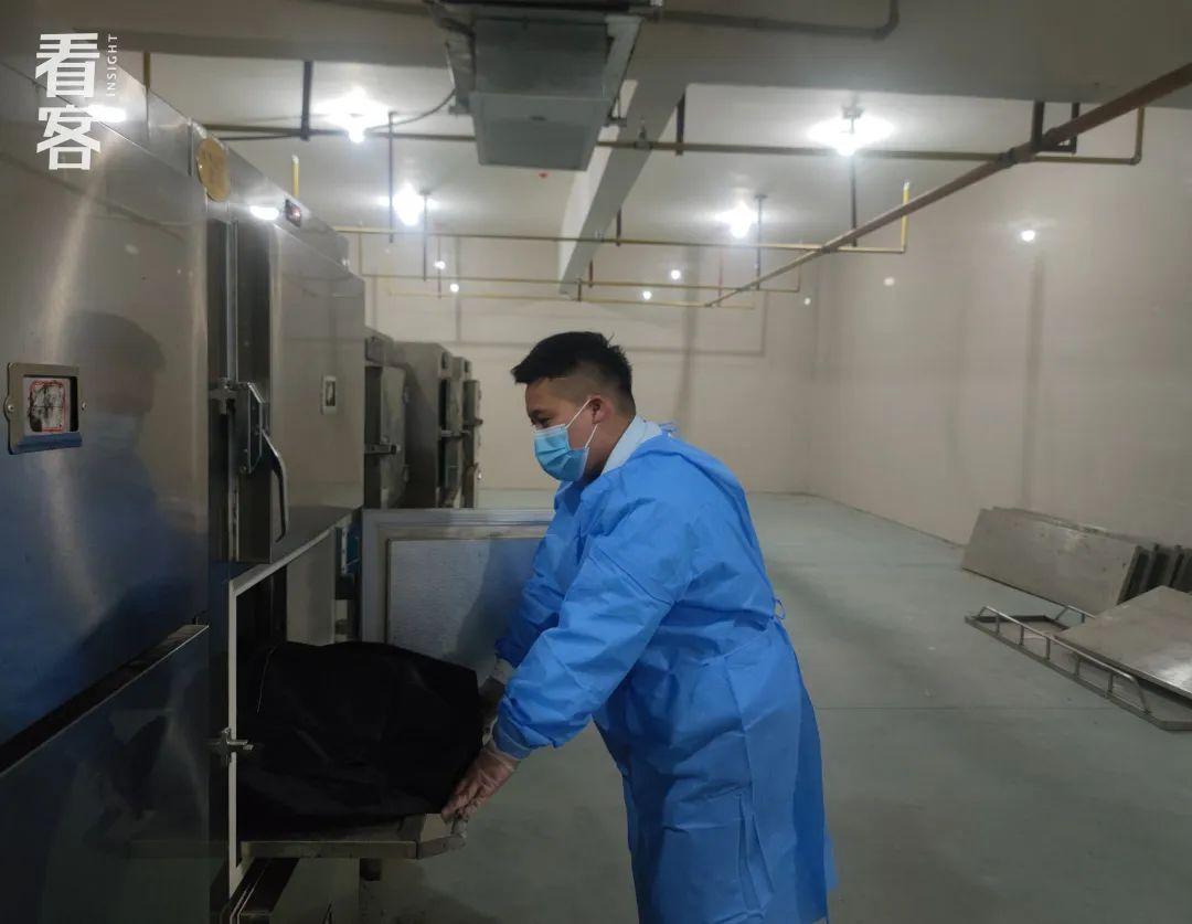 第二天来确认遗体的时候,她丈夫就问我们,能不能跟着一起清洗。我说里面有紫外线消毒,他说没事,“我妻子从来没有跟我离得那么远过”。我们就给了他一套防护服,让他一起进来了。