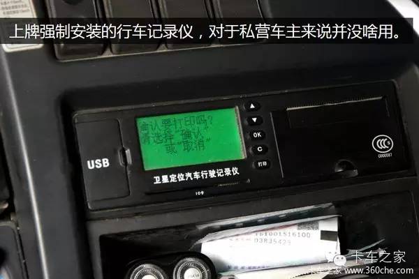 因为平时经常走一些不熟悉的地方,而且等货的时候都比较长,所以在驾驶室加装了导航。除了平时来指引方向之外,停车等候的时候,还可以看看视频。为了方便副座上面的驾驶员,多装了一块屏幕在后视镜上,各自在座位上面都可以观看视频消磨时间。