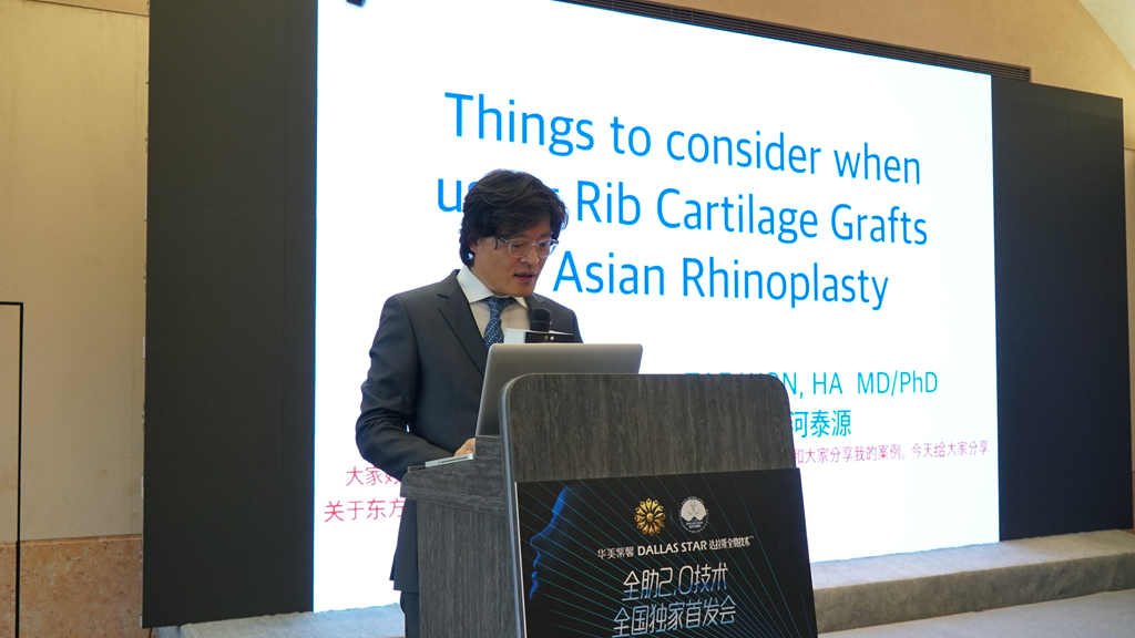 作为本次会议的重头戏,无疑是Dallas STAR达拉斯全肋技术™的发布。据李战强教授介绍,该技术是以“锚定原理”为基石,十项工艺更新。从单纯的肋软骨移植隆鼻,到对支架搭建、软组织处理等技术手法的改进。真正实现不卷曲、不偏斜、不吸收的全肋鼻整形效果。真正采用全自体材料,宛如天生,终生。并且,集团也将成立专门的达拉斯专家团,严格把控医生质量,至少需10年年资医生才能进入专家团,开展此技术应用。使全肋隆鼻正式迈入达拉斯全肋2.0时代!