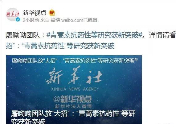 这两个成果中,其中任何一个都足以震惊世界。今天,两项科研成果同时发布,只能说,作为20世纪伟大的科学家,屠呦呦,名至实归!