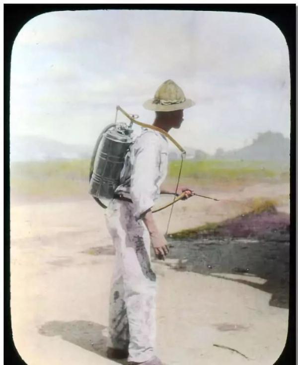 这是百年前,1912年巴拿马运河流域工作者在杀灭蚊子。蚊子杀了100多年还是没能彻底消灭疟疾的传染。可以想象这个病多可怕。