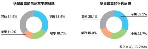 来自苏宁易购的数据显示,高考结束后学生购买笔记本电脑,销量高的三个品牌为华硕、联想、苹果,占比分别是33.5%、18.7%、11.9%;购买手机,销量高的三个品牌是苹果、小米、华为,占比分别是32.2%、22.7%、15.0%。此外,游戏鼠标销量同比增长62.4%。
