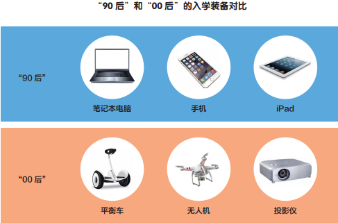 高考结束后,不少考生都想在假期配齐大学新装备,提前规划自己的大学生活。作为伴随着数码产品与互联网长大的一代,在“00后”眼里,笔记本电脑、手机、平板构成的入学装备“三大件”已变得不再时髦。天猫2018开学季数据显示,平衡车、无人机、投影仪成为首批“00后”入学装备的“新三样”。而相比以往的“三大件”,这届准大学生的入学装备无疑更加丰富了。笔记本电脑、智能手机、平板、蓝牙耳机、电动牙刷、智能音箱、VR眼镜……都在购物清单中。总之,今年的入学装备更加多样,更加个性化,更加追求智能化。