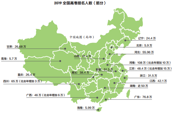 自2008年全国高考人数达到了1050万人之后,报考人数逐年走低,在之后的几年趋于800万左右。而今年高考报名人数猛增56万人,时隔11年再次突破千万大关,达到惊人的1031万人。据了解,今年多个省份高考报名人数均有不同程度的增长。其中,河南今年高考报名人数突破了百万大关达108万人,相比去年98.3万人的数据,增加了10万人左右;江苏的高考报名人数从2018年的33.9万人增长至48.4万人,增加了将近15万人;广西从40万人增长至46万人,增长将近6万人。