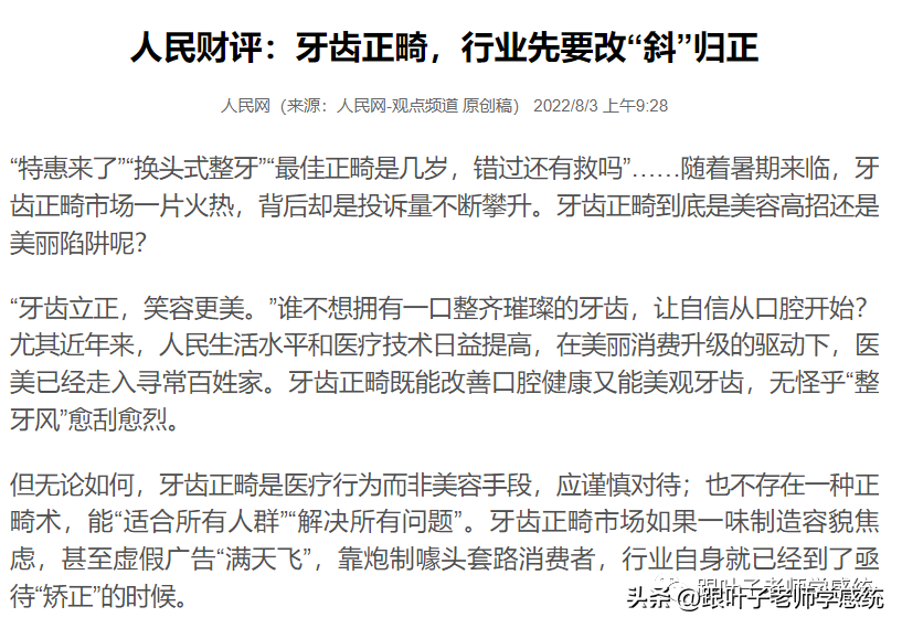 前两天看到了一篇人民网的文章,讲的是关于牙齿正畸行业的情况。