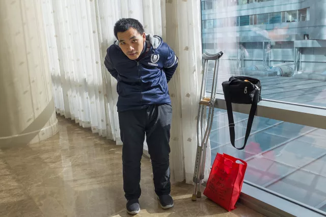 玉杰的背严重地眍䁖着,颈部也不能自然地转动