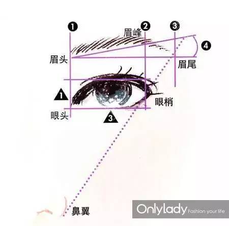 2. 眉峰:白眼珠收尾处的正上方(根据脸型决定高度)