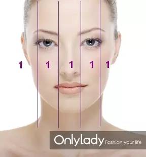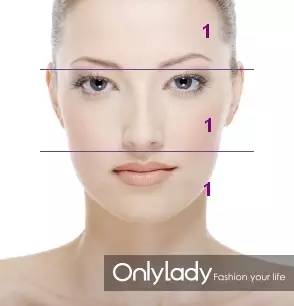 以横向比例测量法,从额头发际中心点到两边眉头中心点、眉头中心点到鼻子底端、鼻子底端到下巴正中心,这三个区段的比例为1:1:1,为脸部长度的黄金比。